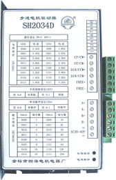SH2034D型细分驱动器采用拨位开关设定相电流及细分数,其中拨位5是半流使能(ON表示非使能,OFF表示使能),其中拨位6是单双脉冲设定(ON表示单脉冲,OFF表示双脉冲)。具体设定见表2,表3。驱动器细分设定后电机的步距角等于电机的整步步距角除以细分数。例如:细分数设定为18,驱动0.9°/1.8°的二相电机,其细分步距角为1.8°/18=0.1°。